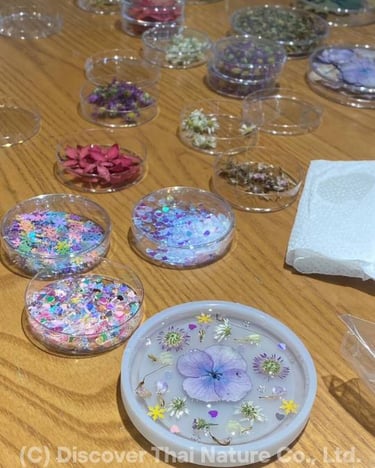 Create dried flower tea, dried flower resins, necklaces, bracelets and merit gifts using typical Thai flowers and learn about their cultural significance